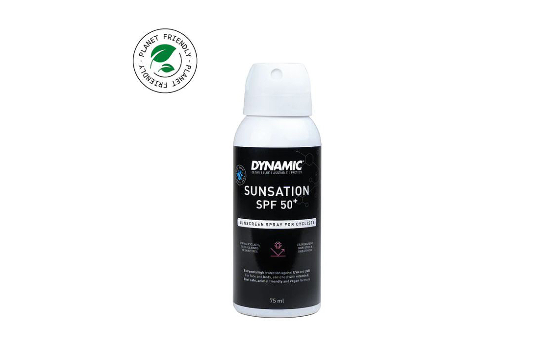 Dynamic „Sunsation” užtikrina saugų ir tolygų įdegį kai važiuojate dviračiu šviečiant saulei. Sukurta galvojant apie dviratininkus, ši skaidri purškiamoji priemonė nuo saulės atspari prakaitui, nelipni bei puikiai tepasi.