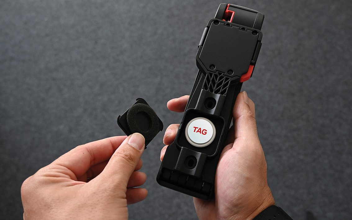 Spynos laikiklyje yra vieta Apple AirTag ar Samsung SmartTag daiktų sekikliui