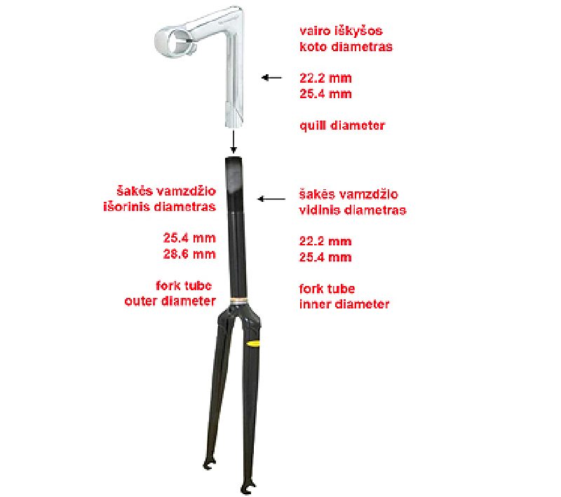 25.4 mm vairui, 28.6 mm šakei, 180 mm, kampas 40, plienas